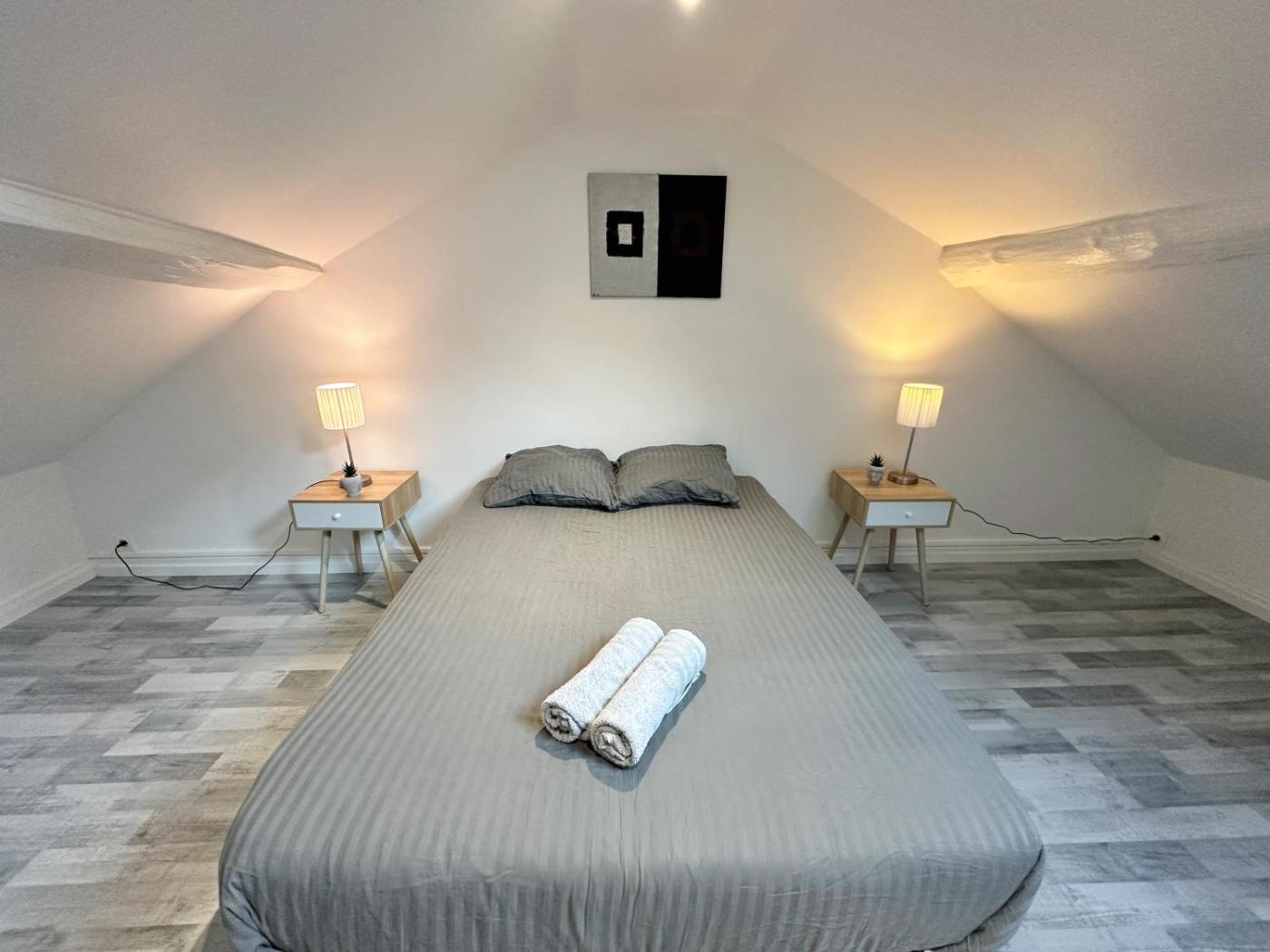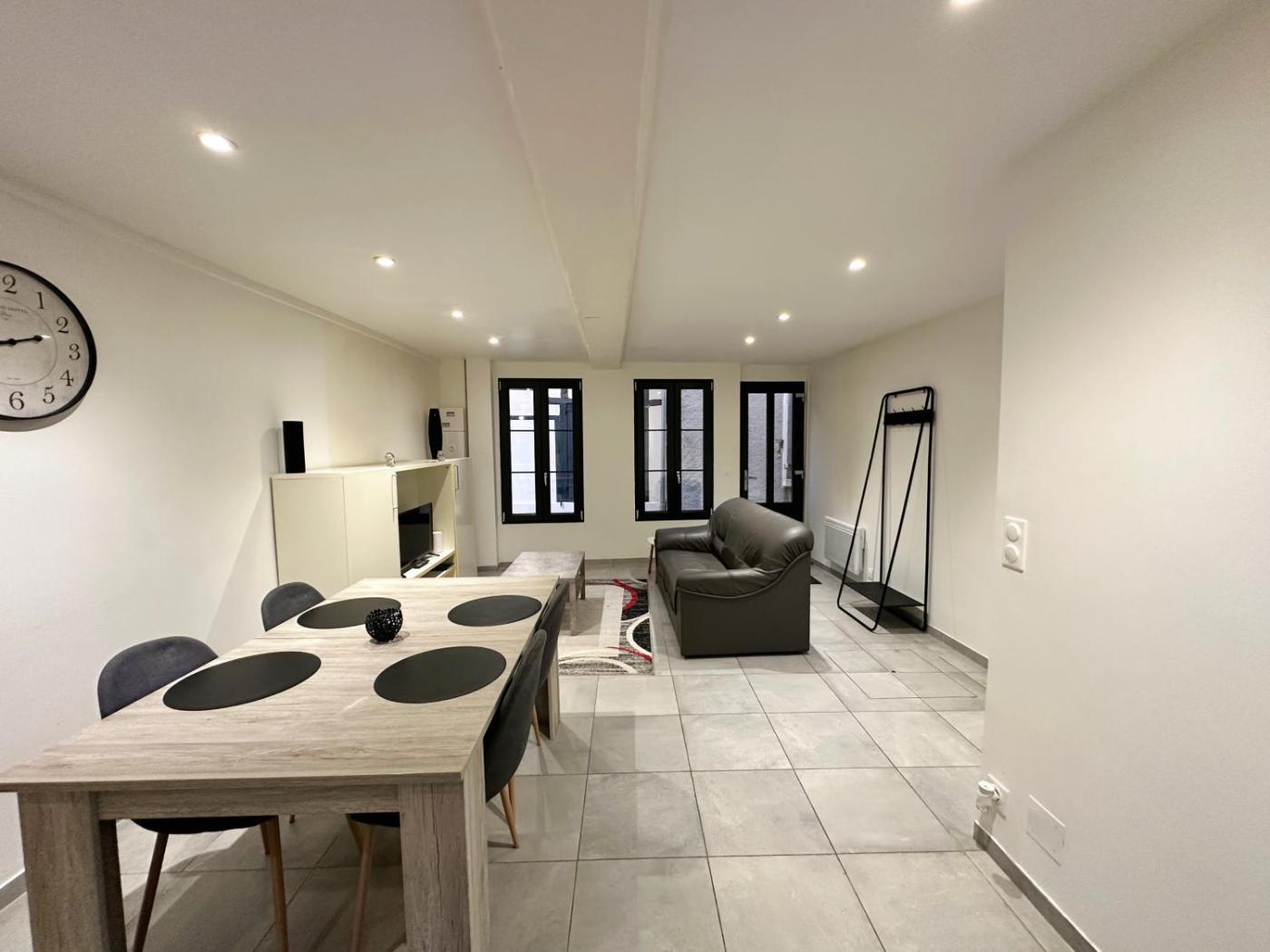 Appartement 2 Chambres. Boasting a private entrance, this apartment also comes with 1 living room, 2 separate bedrooms and 1 bathroom with a bath or a shower. Guests can make meals in the kitchen that features a stovetop, a refrigerator, kitchenware and a microwave. The apartment features a flat-screen TV with streaming services, a tea and coffee maker, a dining area, a wardrobe as well as a quiet street view. The unit has 3 beds.