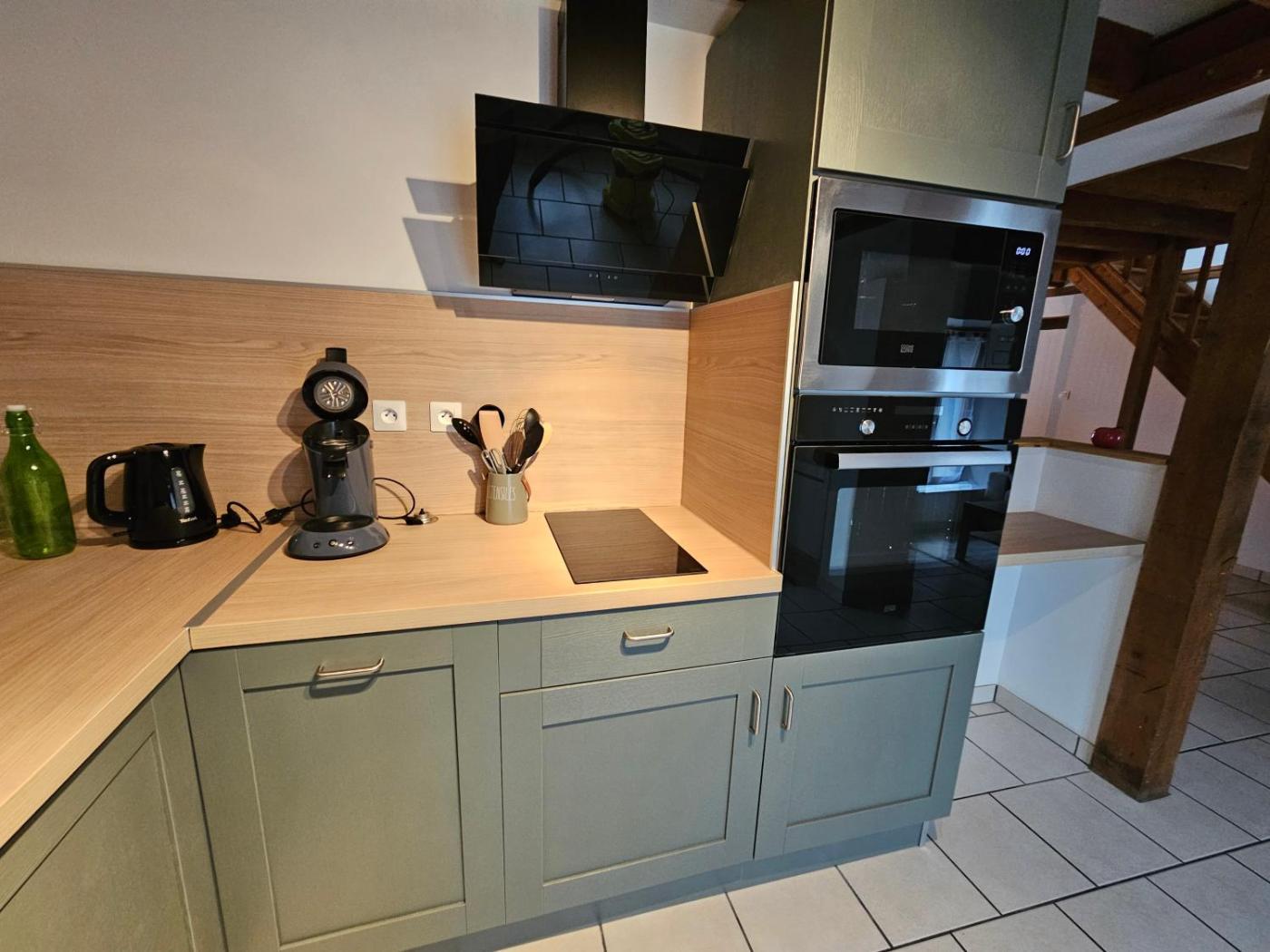 Appartement 2 Chambres. The fully equipped kitchen features a stovetop, a refrigerator, kitchenware and an oven. The apartment has parquet floors, a seating area with a flat-screen TV, a washing machine, a coffee machine as well as a quiet street view. The unit offers 3 beds.