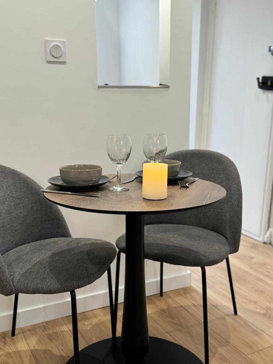 Appartement 1 Chambre. The fireplace is the standout feature of this apartment. Boasting a private entrance, this apartment comes with a kitchen, 1 bedroom and 1 bathroom with a shower and a hairdryer. Meals can be prepared in the well-fitted kitchen, which features a stovetop, a refrigerator, a dishwasher and an oven. The apartment features a tea and coffee maker, a dining area, a wardrobe, a flat-screen TV with cable channels, as well as city views. The unit has 1 bed.