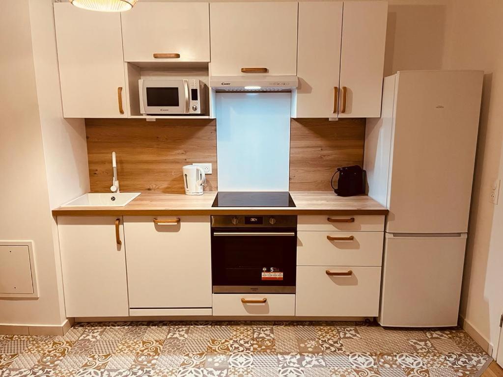 Cet appartement se compose de 2 chambres, dun salon, dune cuisine entièrement équipée avec un réfrigérateur et une machine à café, ainsi que de 1 salle de bains avec une douche et un sèche-cheveux. Une télévision à écran plat est disponible.