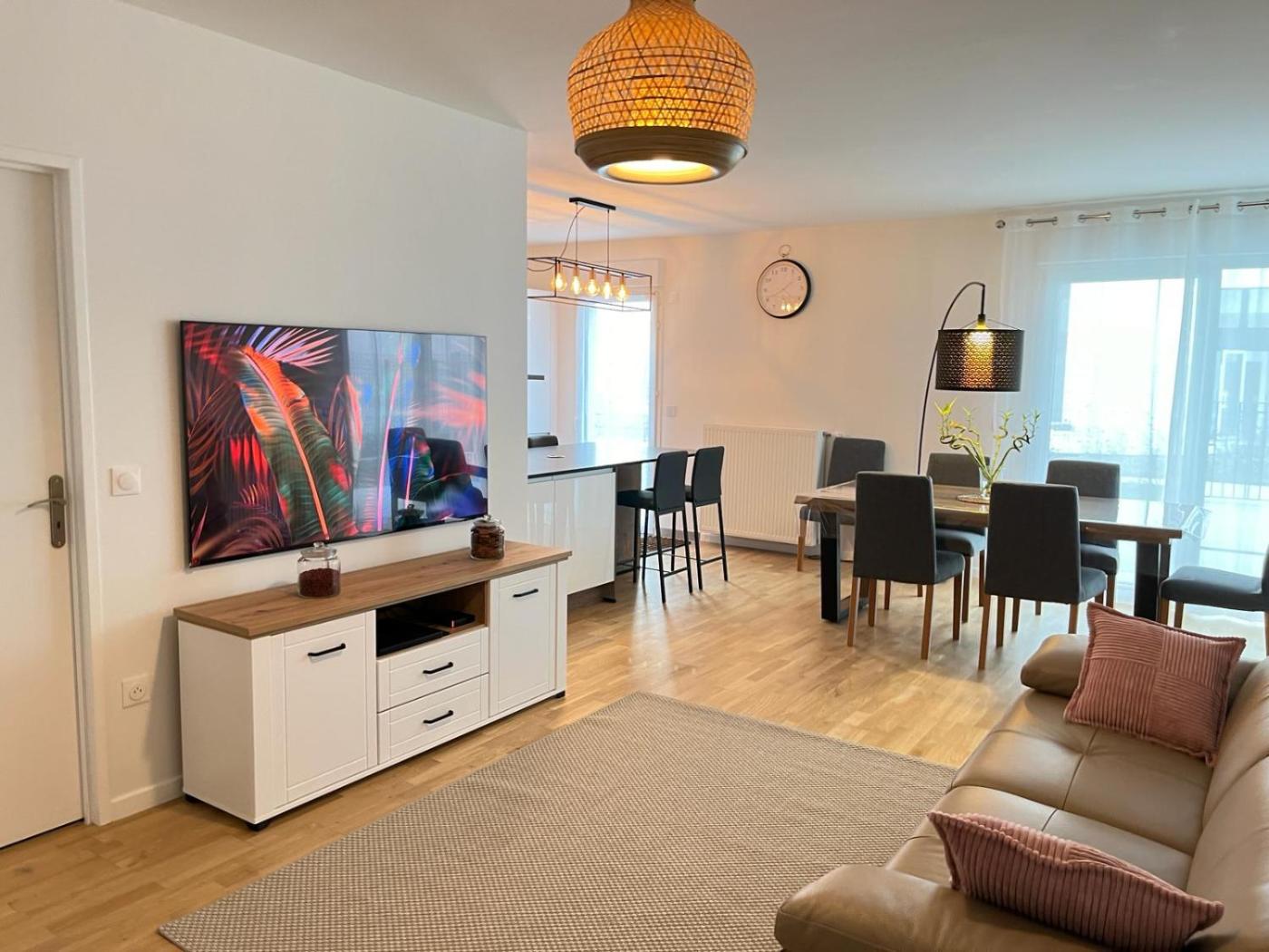 Appartement avec Terrasse. This spacious apartment comes with 1 living room, 3 separate bedrooms and 2 bathrooms with a bath and free toiletries. Guests can make meals in the kitchen that features a stovetop, a refrigerator, a dishwasher and kitchenware. The apartment features a flat-screen TV with streaming services, a washing machine, a private entrance, soundproof walls as well as garden views. The unit has 3 beds.