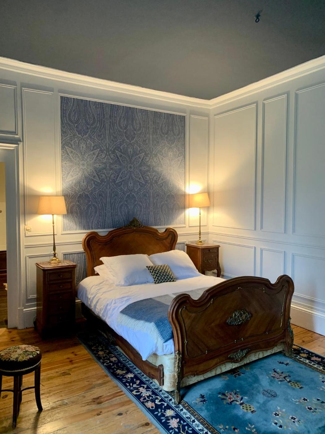 Chambre Double. Providing free toiletries, this double room includes a private bathroom with a bath, a shower and a hairdryer. The double room features parquet floors and provides a tea and coffee maker, a wardrobe and garden views. The unit offers 1 bed.