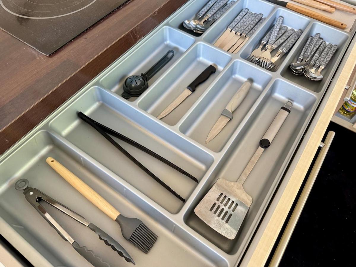 Cet appartement comporte 1 chambre, une cuisine, une télévision à écran plat, un coin salon, ainsi que 1 salle de bains avec une baignoire ou une douche.