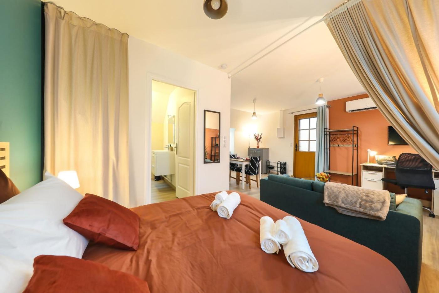 Studio Supérieur. The fully equipped kitchen features a stovetop, a refrigerator, a dishwasher and an oven. This air-conditioned studio includes a flat-screen TV with streaming services, a private bathroom as well as a balcony with garden views. The unit offers 2 beds.