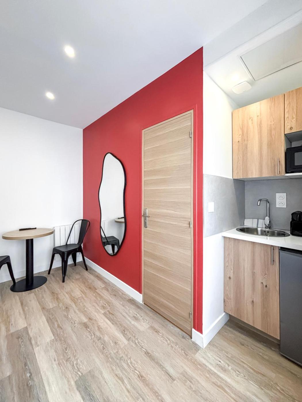 Studio Supérieur. The studio offers a private entrance, a coffee machine, as well as a private bathroom featuring a shower and a hairdryer. Meals can be prepared in the well-fitted kitchenette, which is fitted with a stovetop, a refrigerator and a microwave. This studio provides heating and a flat-screen TV. The unit offers 1 bed. ;