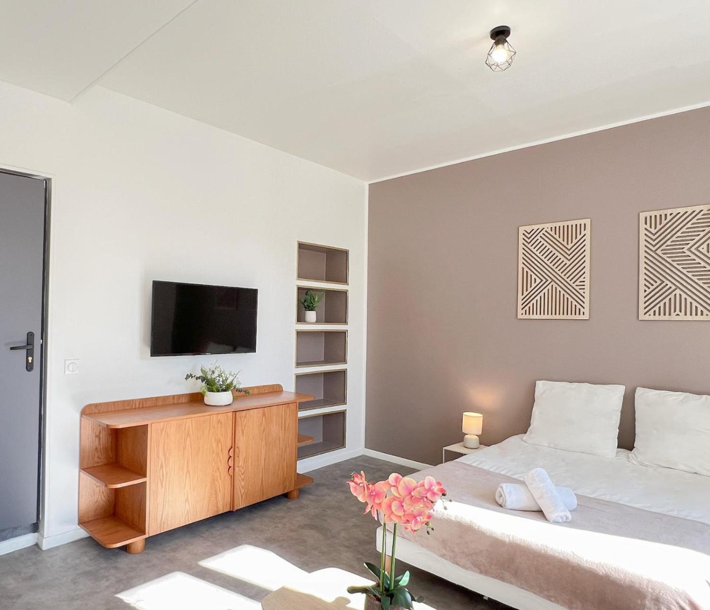 Appartement 1 Chambre. The apartment features 1 bedroom, 1 bathroom with a shower and a kitchenette. Guests can make meals in the fully equipped kitchenette that has a stovetop, kitchenware and a microwave. The apartment provides a dining area, an electric kettle, heating, as well as a flat-screen TV with streaming services. The unit offers 2 beds.