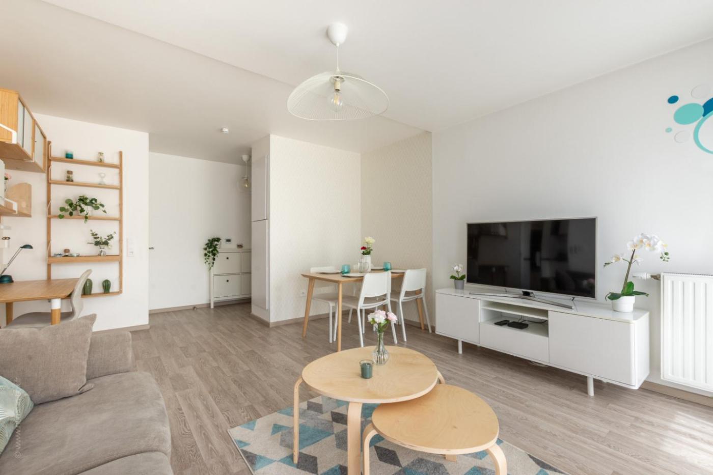 Appartement 1 Chambre de Luxe - Vue sur Jardin. Featuring a private entrance, this spacious apartment also comprises 1 living room, 1 separate bedroom and 1 bathroom with a walk-in shower. Meals can be prepared in the well-fitted kitchen, which is equipped with a dishwasher, kitchenware, an oven and a microwave. The apartment provides a flat-screen TV with cable channels, a washing machine, a minibar, a tea and coffee maker as well as garden views. The unit offers 4 beds.
