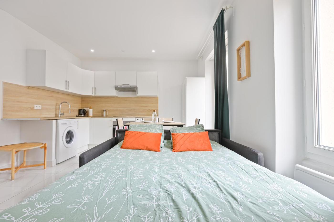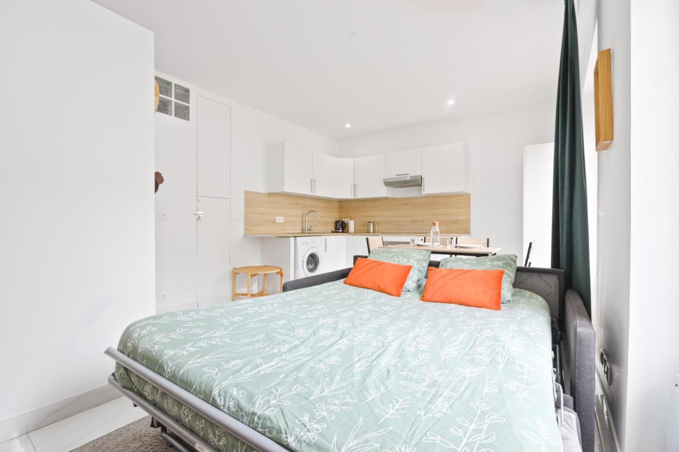 Appartement 1 Chambre. This apartment consists of 1 living room, 1 separate bedroom and 1 bathroom with a shower and a hairdryer. Meals can be prepared in the kitchen, which is equipped with a stovetop, a refrigerator, kitchenware and an oven. The apartment features tiled floors, a seating area with a flat-screen TV with cable channels, a washing machine, a tea and coffee maker, as well as a dining area. The unit offers 2 beds.
