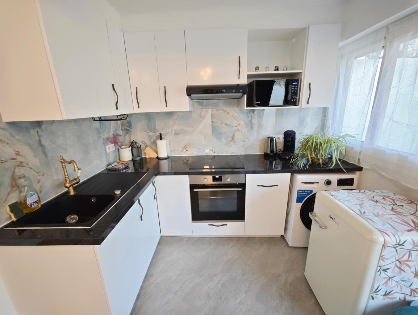 Cet appartement se compose de 1 chambre, dun salon, dune cuisine entièrement équipée avec un réfrigérateur et une machine à café, ainsi que de 1 salle de bains avec une douche et des articles de toilette gratuits. Des serviettes et du linge de lit sont à votre disposition.
