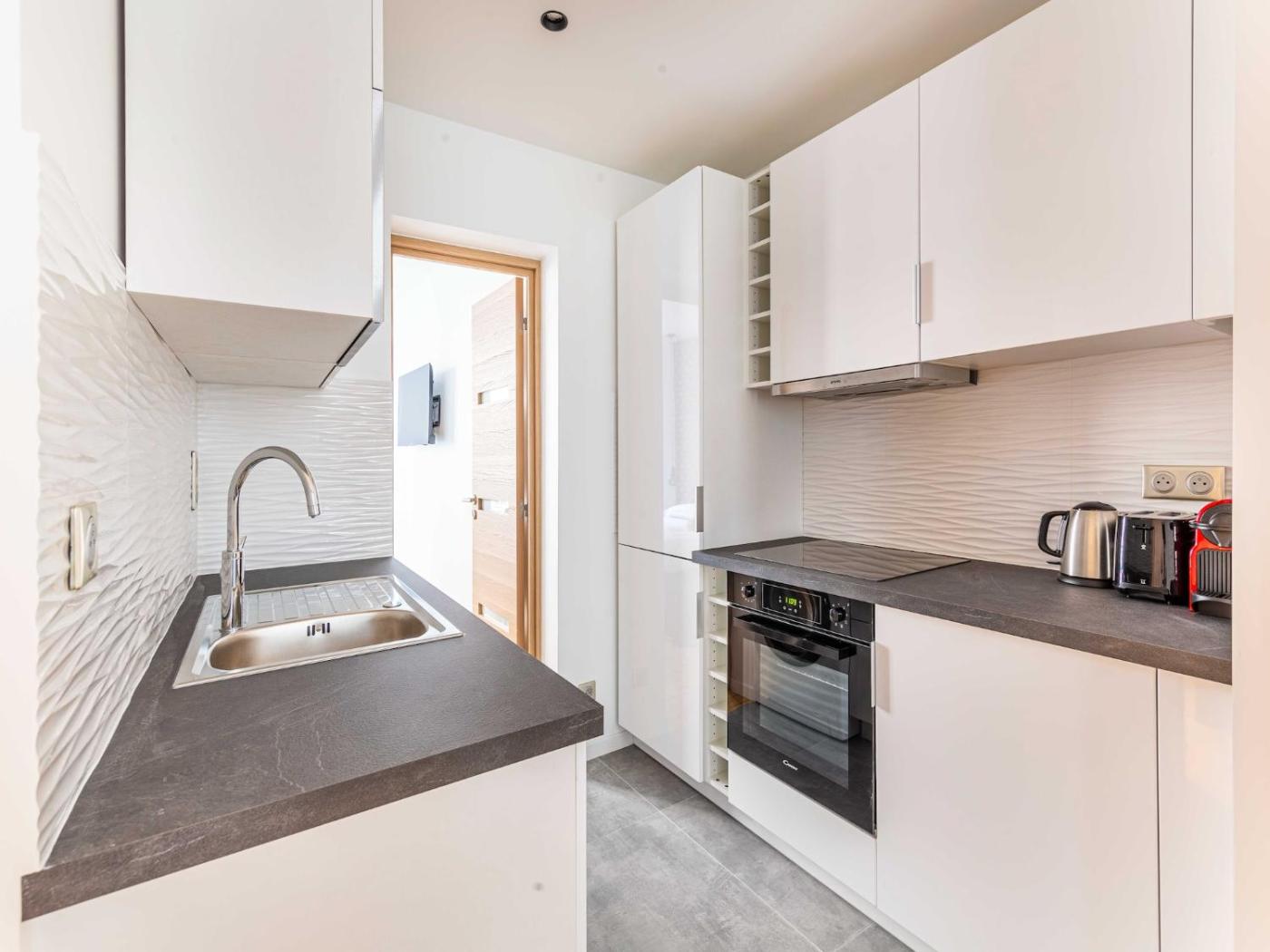 Appartement 1 Chambre. This apartments standout feature is the fireplace. This apartment includes 1 living room, 1 separate bedroom and 1 bathroom with a shower and a hairdryer. In the fully equipped kitchen, guests will find a refrigerator, kitchenware, an oven and a microwave. The apartment offers a washing machine, a tea and coffee maker, a seating area, a dining area, as well as a TV with cable channels. The unit has 1 bed.