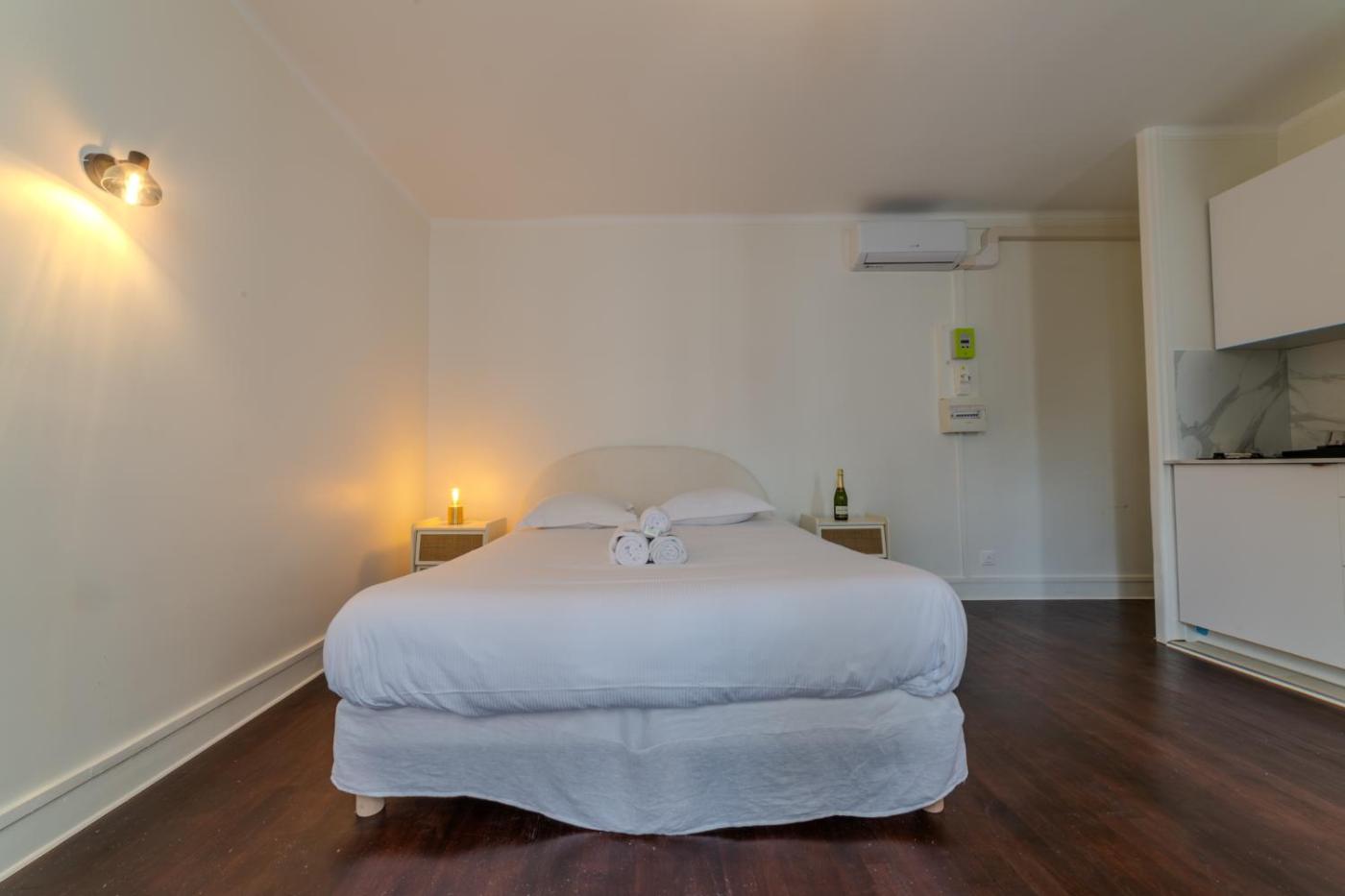 Appartement 1 Chambre. In the well-fitted kitchen, guests will find a stovetop, a refrigerator, kitchenware and a microwave. The apartment has parquet floors, a seating area with a flat-screen TV with streaming services, air conditioning, a private entrance, as well as a tea and coffee maker. The unit has 1 bed.