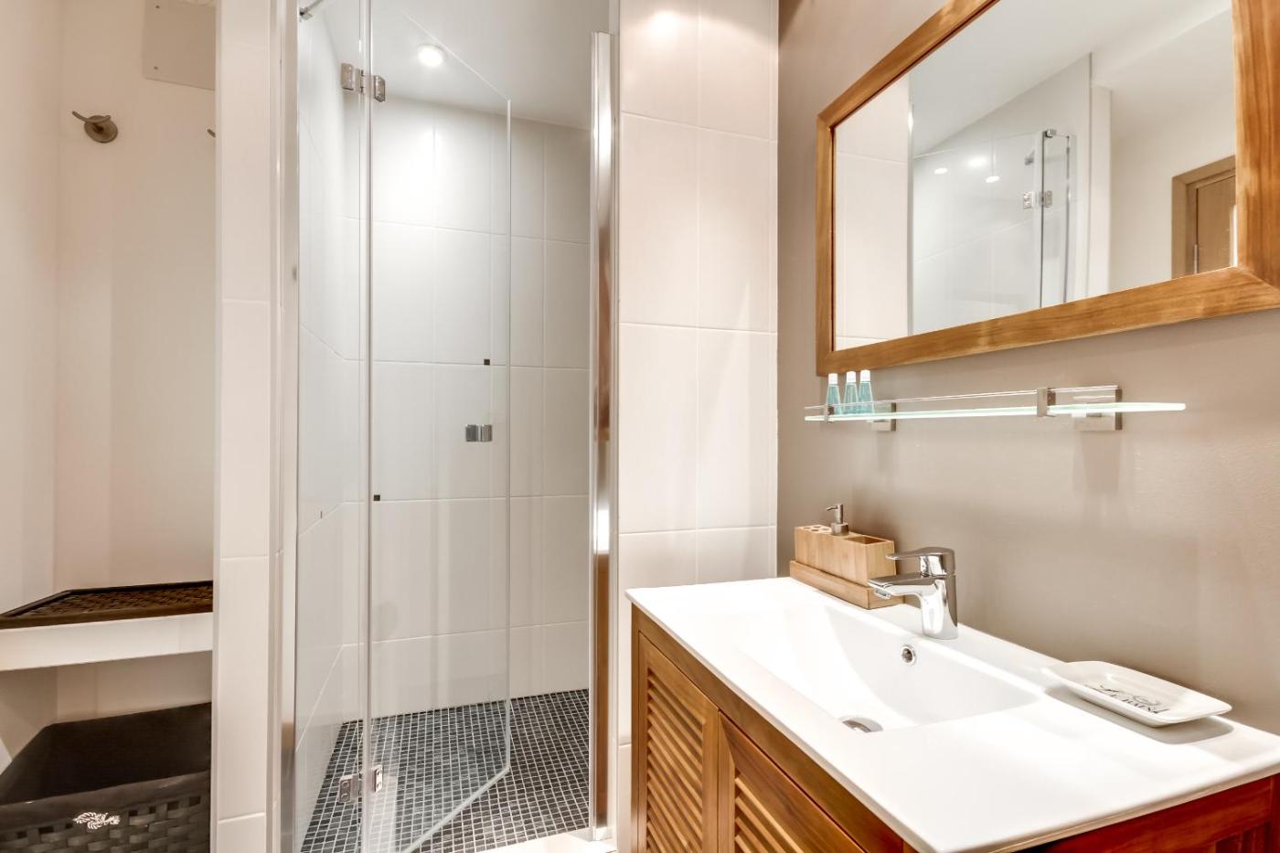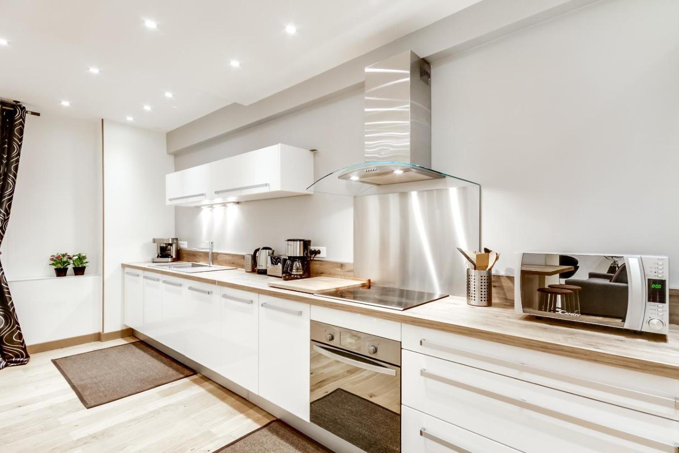 Appartement 3 Chambres. This spacious apartment features 1 living room, 3 separate bedrooms and 1 bathroom with a bath or a shower and free toiletries. Meals can be prepared in the kitchen, which has a stovetop, a refrigerator, a dishwasher and kitchenware. The apartment has parquet floors, a seating area with a flat-screen TV with streaming services, air conditioning, a washing machine, as well as a private entrance. The unit has 5 beds.