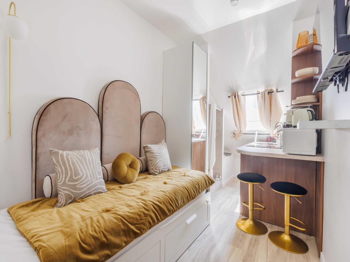 Studio. The fireplace is a top feature of this studio. In the kitchen, guests will find a stovetop, a refrigerator, kitchenware and a microwave. A seating area with a TV, a desk and a private bathroom are available in this studio. The unit has 1 bed.