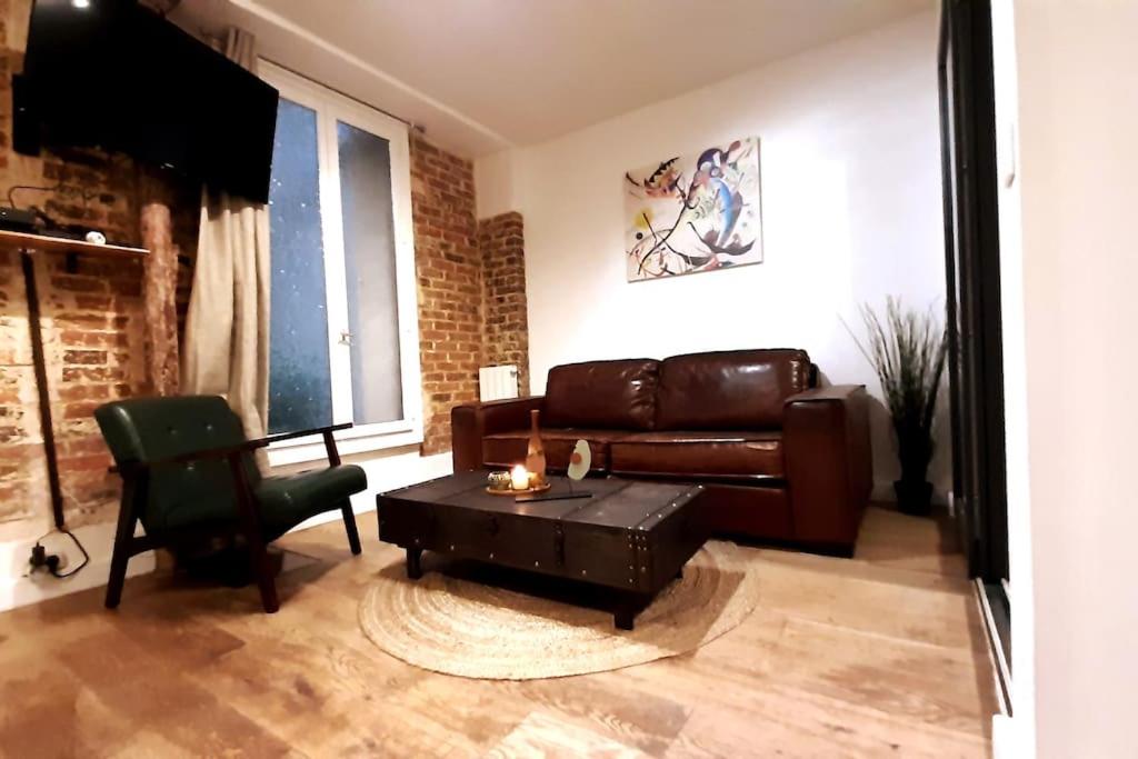 Appartement 1 Chambre. The well-fitted kitchen features a stovetop, a refrigerator, kitchenware and a microwave. The apartment has parquet floors, a seating area with a flat-screen TV, a washing machine, a tea and coffee maker, as well as a dining area. The unit offers 2 beds.