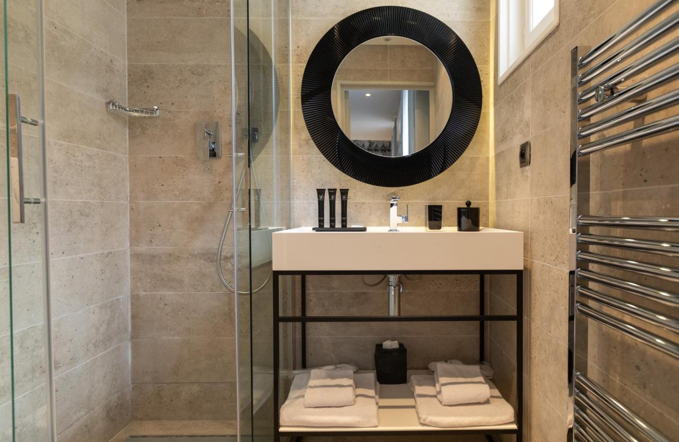 Suite de Luxe 2 Chambres - La Nuit Blanche. Installée au rez-de-chaussée, cette suite comprend 2 chambres séparées ainsi qu’une salle de bains avec une douche à litalienne.