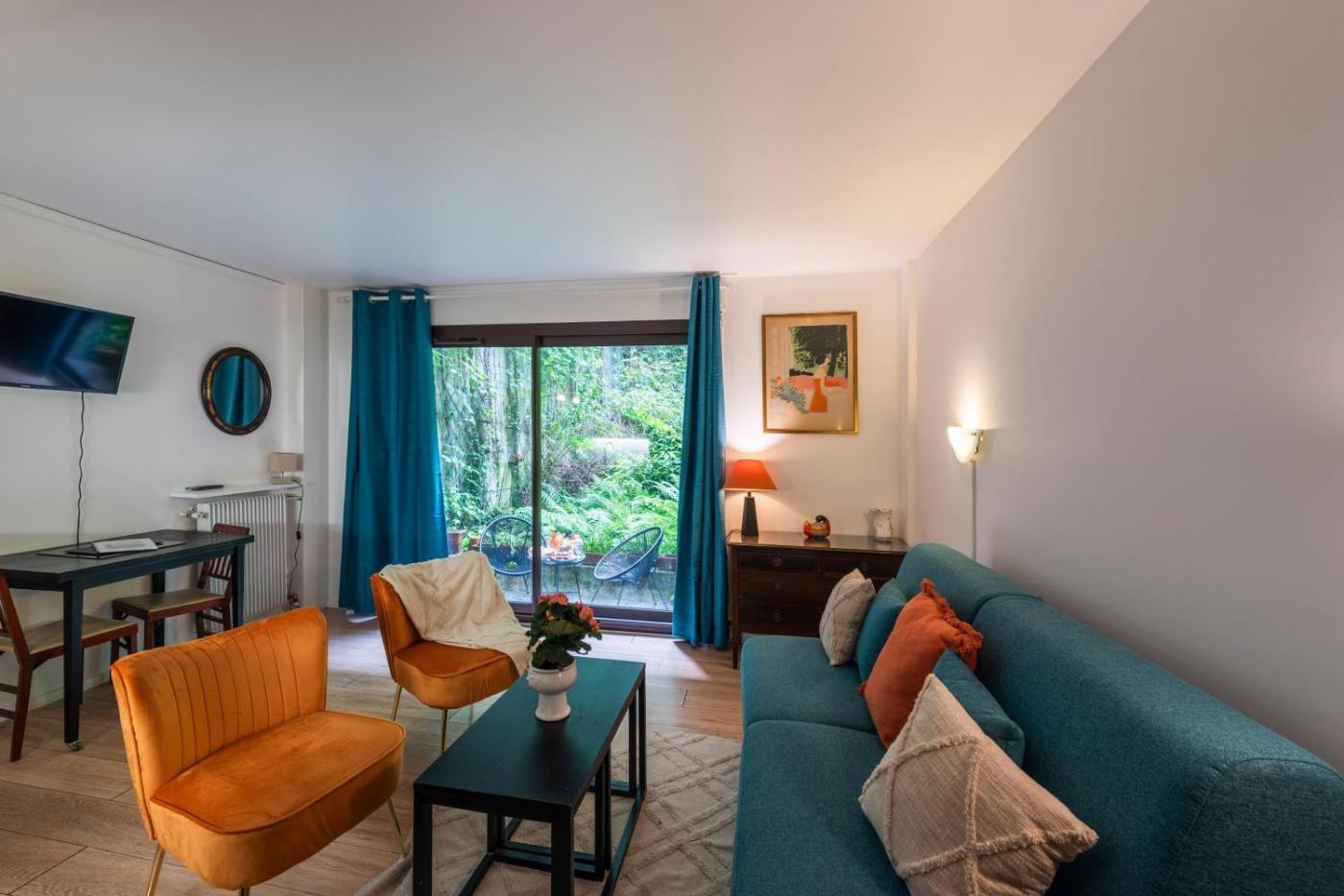 Cet appartement comporte 1 chambre, 1 salle de bains, du linge de lit, des serviettes, une télévision à écran plat, une cuisine entièrement équipée et une terrasse offrant une vue sur le jardin.