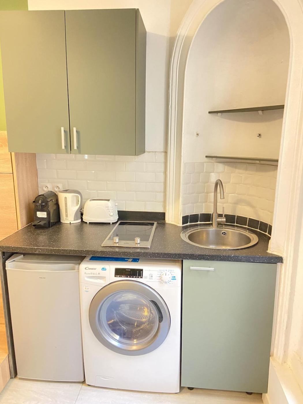 Appartement 1 Chambre. Vous pourrez préparer vos repas et conserver vos aliments dans la cuisine de l’appartement. Cet appartement dispose d’un lave-linge, du chauffage et d’une télévision à écran plat. Ce logement comprend 1 lit.