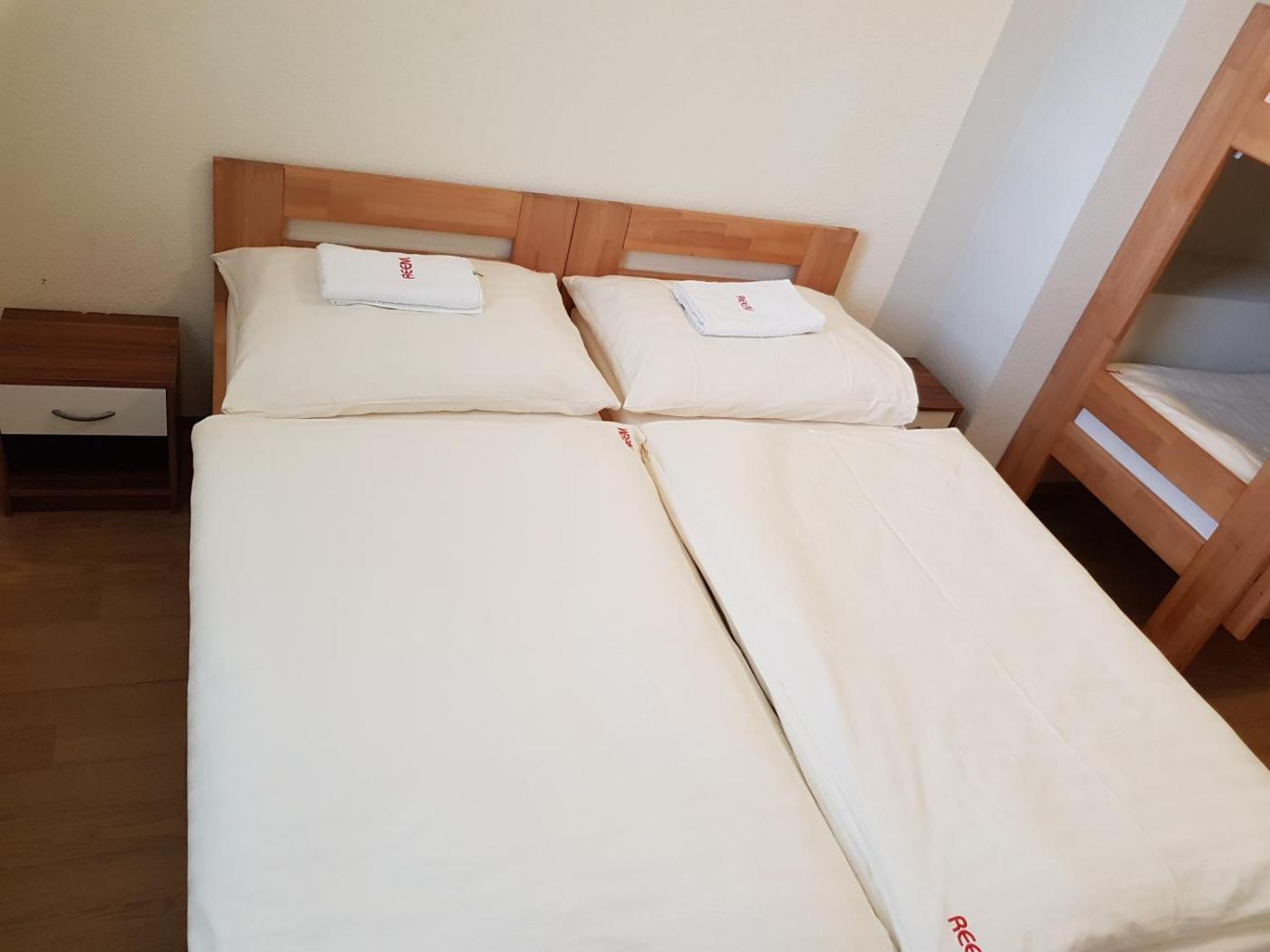 Chambre 6 - Chambre Quadruple Économique. La chambre quadruple dispose dun lave-linge, dun plateaubouilloire ainsi que dune salle de bains commune avec une douche à litalienne et un sèche-cheveux. Ce logement comprend 3 lits. ;