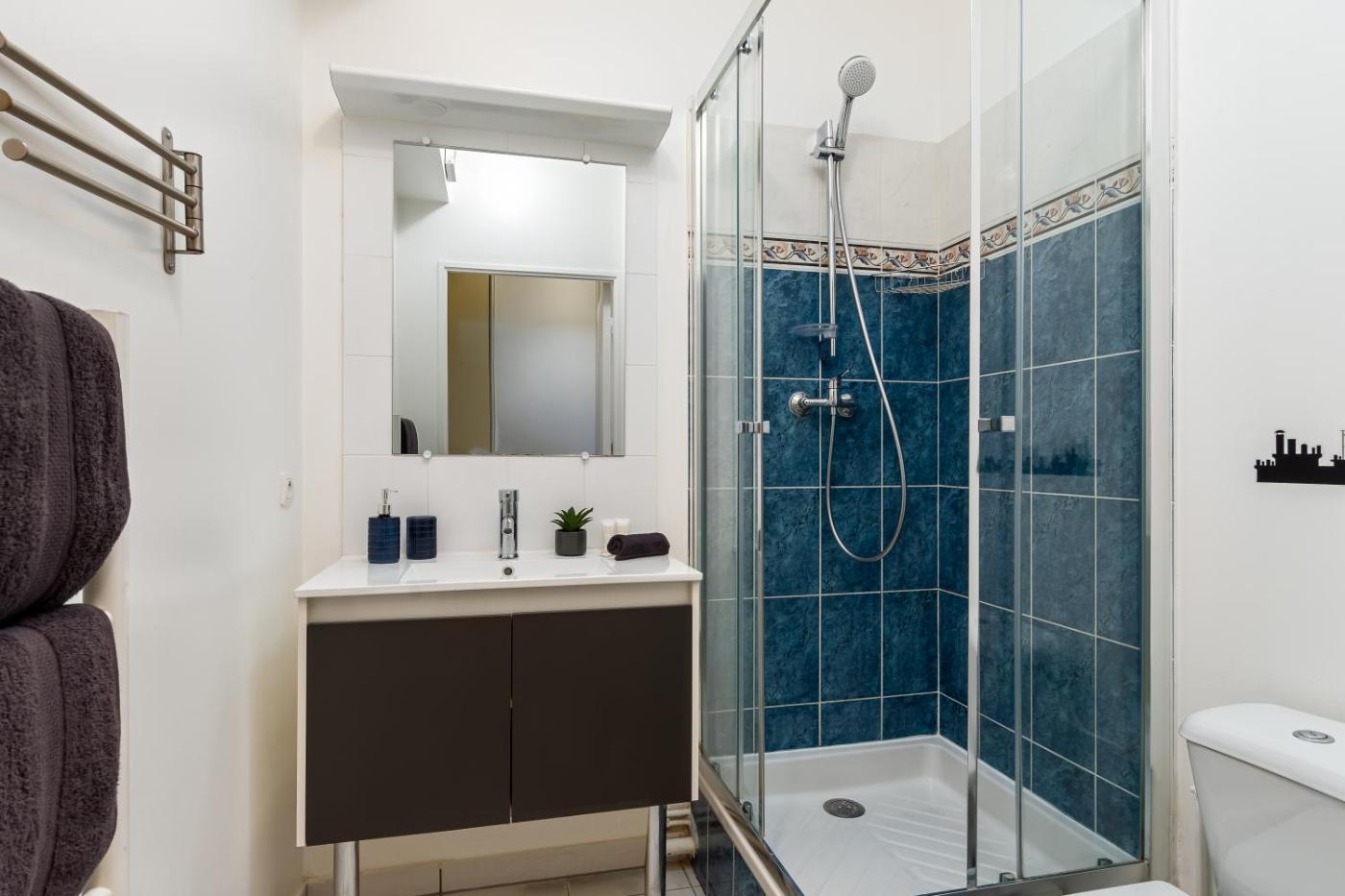 Appartement 1 Chambre. This apartment consists of 1 living room, 1 separate bedroom and 1 bathroom with a shower and free toiletries. Guests can make meals in the kitchen that is equipped with a stovetop, a refrigerator, kitchenware and a microwave. The apartment features parquet floors, a seating area with a flat-screen TV with streaming services, a tea and coffee maker, a dining area, as well as a wardrobe. The unit offers 2 beds.