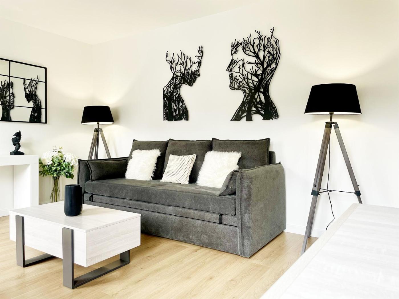 Cet appartement se compose de 2 chambres, dun salon, dune cuisine entièrement équipée avec un réfrigérateur et une machine à café, ainsi que de 1 salle de bains avec une douche et un sèche-cheveux. Cet hébergement met à votre disposition des serviettes et du linge de lit.